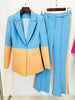 HIGH QUALITY Newest 2025 Star Style Designer Runway Suit Set Women's Single Button Color Block Blazer Flare Pants Suit