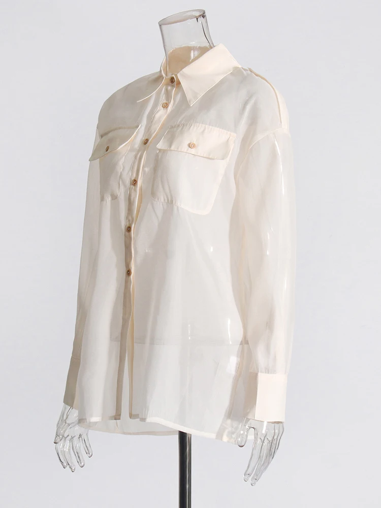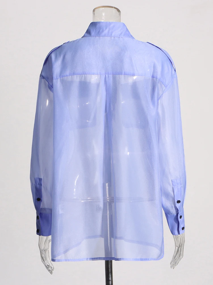 TWOTWINSTYLE Solid Temperament Spliced Button Shirt For Women Lapel Long Sleeve Patchwork Pocket Minimalist Blouses Female New